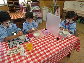 セシリア組は、クッキングで「おにぎり」を作りました。